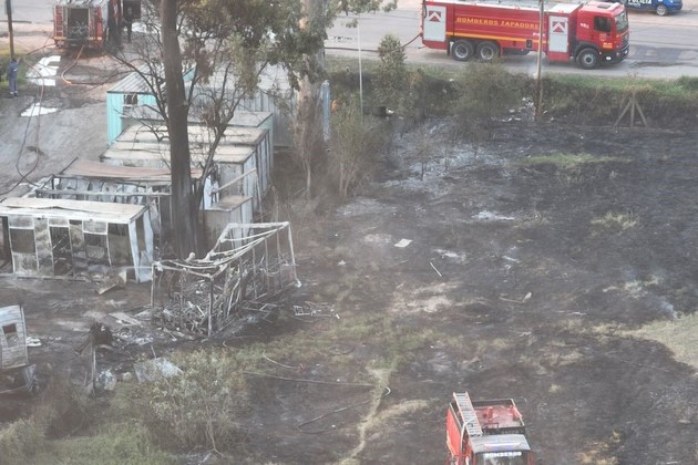El fuego que afectó a la firma Basani se inició en las cercanías momentos antes, cuando ardieron pastizales secos.