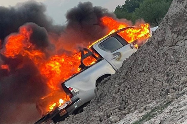 Cuando personal del Comando Radioeléctrico se acercó a la escena encontró una camioneta Toyota Hilux gris que era devorada por las llamas.