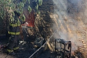Dotaciones de la Agrupación de Bomberos Zapadores y voluntarios santotomesinos trabajaron con rapidez para extinguir el fuego, que alcanzó a hacer destrozos totales dentro de uno de los dos ambientes de la casilla.