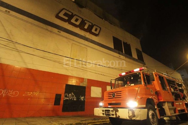 Un voraz incendio se desató este jueves pasadas las 20.30 en el depósito de alimentos del supermercado Coto, sucursal del shopping Recoleta, en San Luis y Santiago del Estero. Tres dotaciones de bomberos trabajaron hasta medianoche para apagar el fuego, que alcanzó importantes dimensiones. La pared sur, contigua a la empresa Cablevisión, corría riesgo de derrumbe, según confirmó a El Litoral el subjefe de la comisaría tercera.