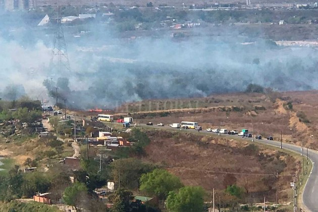 Fuentes policiales informaron a El Litoral que el siniestro ocurre frente a la torre de alta tensión. Estaban afectados pastizales y basuras en grandes dimensiones.