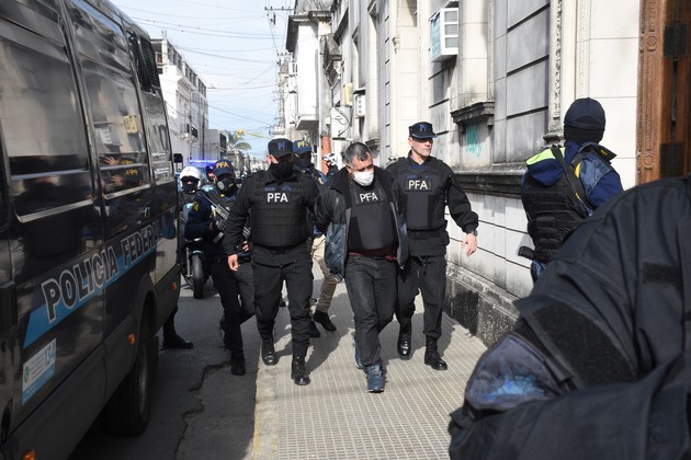 En medio de un fuerte procedimiento policial, los uniformados -se estima que participaron más de 20-, cortaron las calles aledañas a la esquina de 9 de Julio y Monseñor Zaspe, con un despliegue en el que participaron efectivos de la motorizada, y otras patrullas que montaron guardia exhibiendo armas largas.