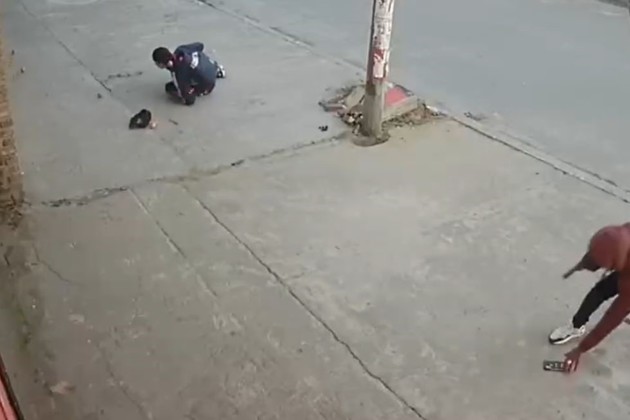 Según las imágenes captadas por una cámara de seguridad de la zona, el chico fue abordado por los dos delincuentes en moto y al intentar escapar el acompañante lo corrió y le disparó.