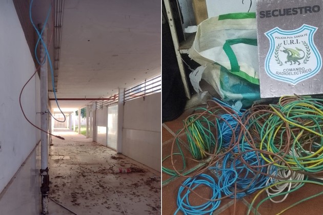 Agentes del Comando Radioeléctrico recibieron un alerta de la Central de Emergencias 911 para investigar la presencia de dos individuos sustrayendo cables de la escuela de enfermería N°508 Cecilia Grierson, ubicada en Callejón Funes y Alsina.