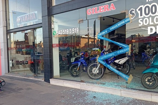 Para ingresar al local los malvivientes rompieron un blindex. Crédito: El Litoral.