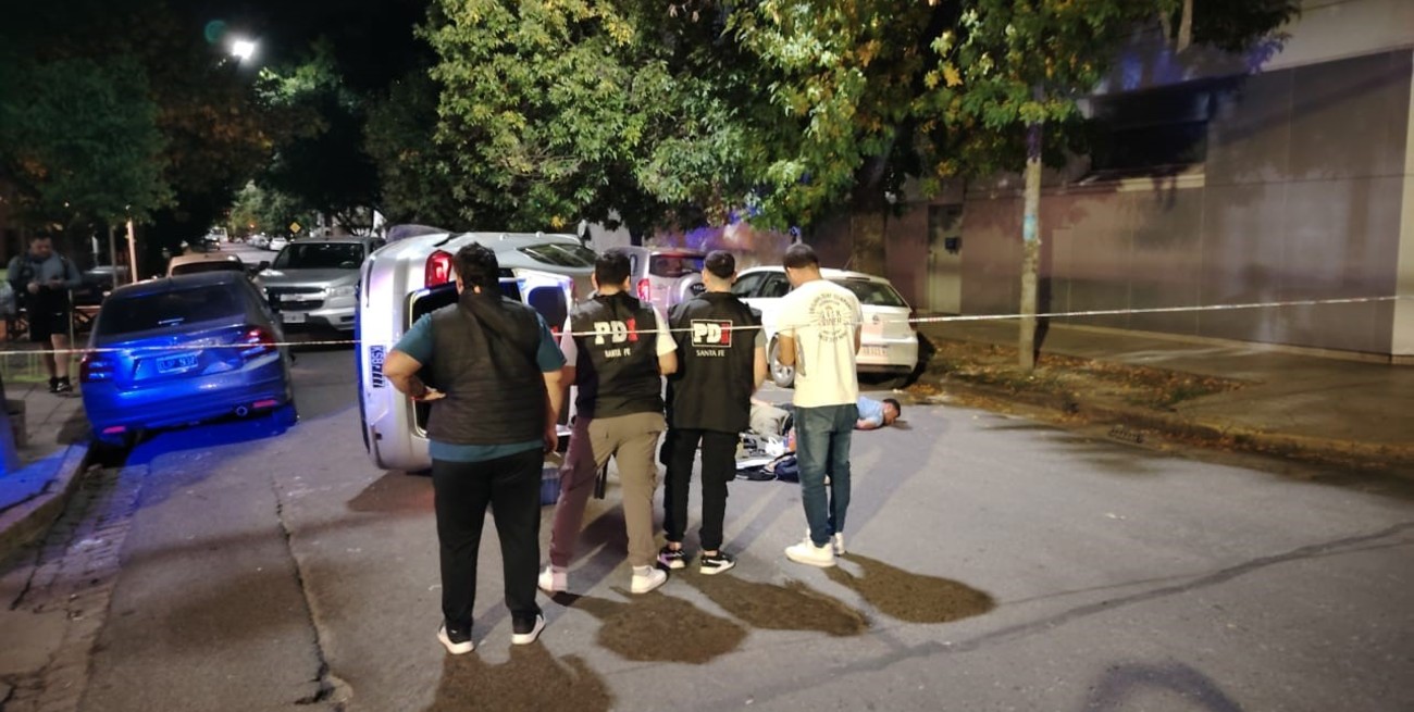 Minutos después, una patrulla localizó el auto circulando por calle Belgrano e Ituzaingó. Al intentar huir, los ocupantes perdieron el control y volcaron. Los dos hombres fueron aprehendidos en el lugar y trasladados al hospital Cullen por el 107.