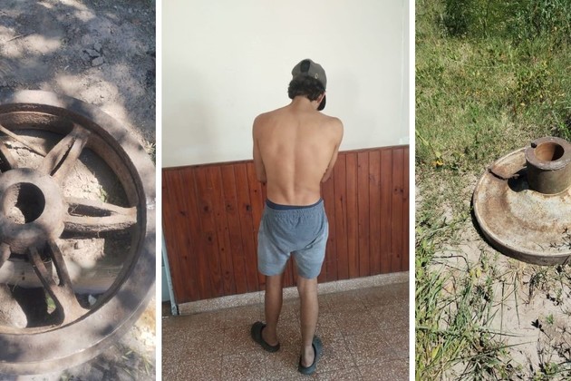 Todo comenzó cuando empleados de la sala de monitoreo local alertaron a la policía sobre un joven que estaba trasladando lo que parecía la rueda de un vagón, por calle Néstor Kirchner y Pastor Barrio.