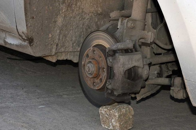 Pasadas las 18 el hombre regresó y descubrió que su automóvil ya no era el mismo... le faltaban sus cuatro ruedas completas.