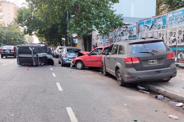 El siniestro vial sucedió en la madrugada de este martes en avenida Avellaneda al 2600, Flores, cuando, según confirmaron fuentes policiales, un hombre de 31 años declaró haberse quedado dormido e impactar con su camioneta Dodge Journey a un auto VW Pointer y tres VW Gol, y desparramar dos contenedores de residuos.
