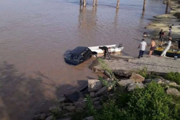Allí, un hombre que intentaba bajar su lancha al agua terminó cayendo junto a su auto y el correspondiente trailer.