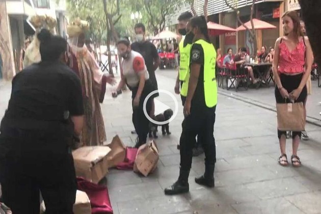 Tres hombres disfrazados de los Reyes Magos fueron requisados en la peatonal rosarina. La secuencia fue registrada por el cineasta Gustavo Postiglione