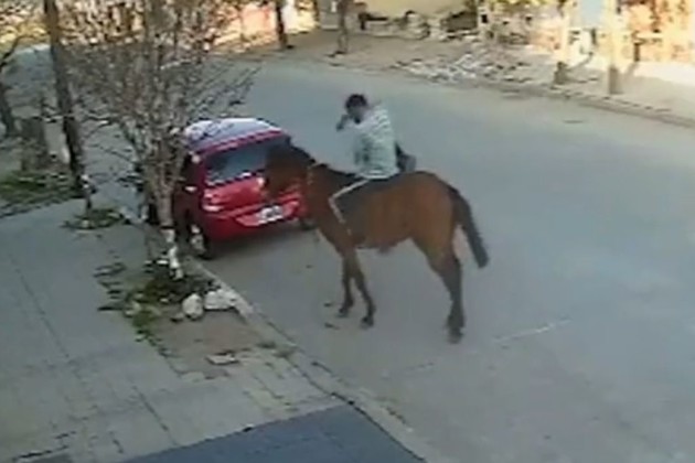 Cual gaucho o cowboy del lejano oeste, el malviviente descendió del animal para cometer el ilícito en la calle 24 de Septiembre al 2700, donde el hombre logró romper el vidrio y luego huir arriba del caballo con el botín. Toda la secuencia fue registrada por las cámaras de video vigilancia de domicilios de la cuadra.