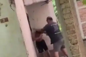 Minutos después, se presentó en el domicilio señalado y, antes de que el presunto autor lograra meterse dentro de la vivienda, lo golpeó en distintas partes del cuerpo. La secuencia fue grabada con un celular por un testigo.