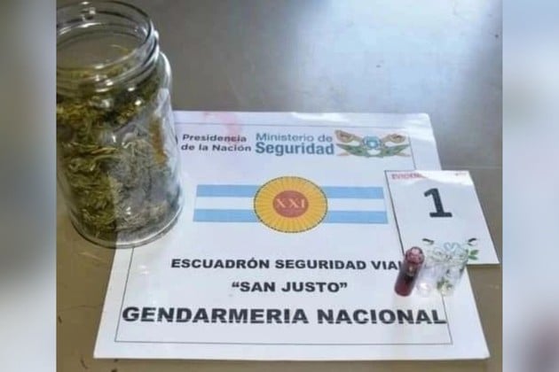 Durante el control, los gendarmes advirtieron un fuerte olor característico a marihuana. La requisa del vehículo permitió hallar, dentro de una mochila ubicada en el asiento del acompañante, tres bolsas de nylon transparente con un total de 5.852,84 gramos de cannabis. Kadesevich quedó detenido y las actuaciones fueron remitidas al Juzgado Federal correspondiente.