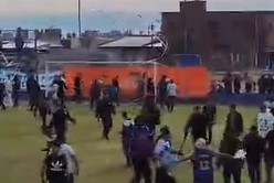 Las imágenes muestran a los futbolistas de Argentino de Lanteri intentando recuperarse de los efectos del gas pimienta lanzado por los efectivos policiales que, en su afán por impedirles el ingreso a los futbolista al camarín del cuerpo arbitral, arrojaron ese compuesto en aerosol.