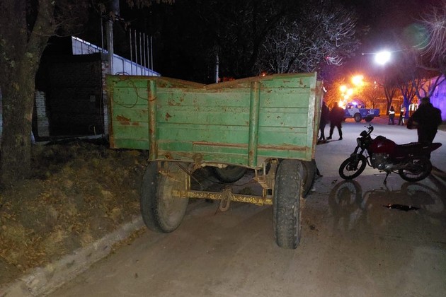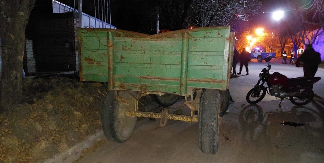 Allí, los uniformados se encontraron con una moto color roja con negro sin patente tirada sobre el asfalto, junto a una personas de sexo masculino, que presentaba una grave lesión a la altura de la cabeza. A pocos metros del lugar, un acoplado de carga tipo cerealero de dos ejes, estacionado.