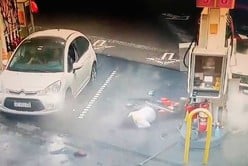 En las imágenes se muestra que el hombre, ya arriba de la plaza, dobló a la izquierda con la idea de retomar camino, pero no lo logró. De este modo se bajó del auto, observó que estaba roto, se volvió a subir y se acostó a dormir.