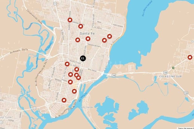 A continuación un mapa con algunos de los locales atacados en las últimas semanas en la ciudad de Santa Fe