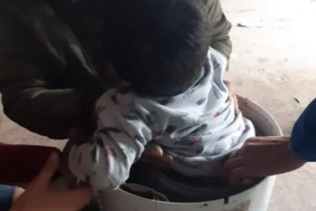 El niño, de tres años, se atascó mientras jugaba.