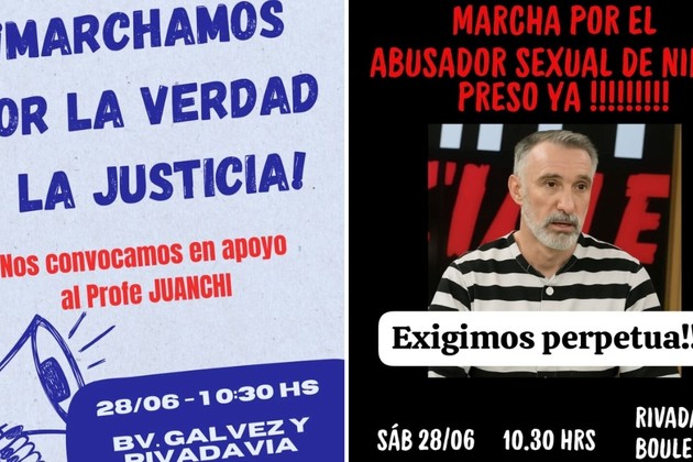 La otra movilización, en contraste, es impulsada por allegados y simpatizantes del docente. A través de publicaciones bajo el lema "Juanchi es inocente", este grupo sostiene que la sentencia es injusta y exige la revisión del fallo. "Marchamos por la verdad y la justicia", indican los organizadores, también desde las redes.