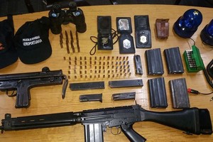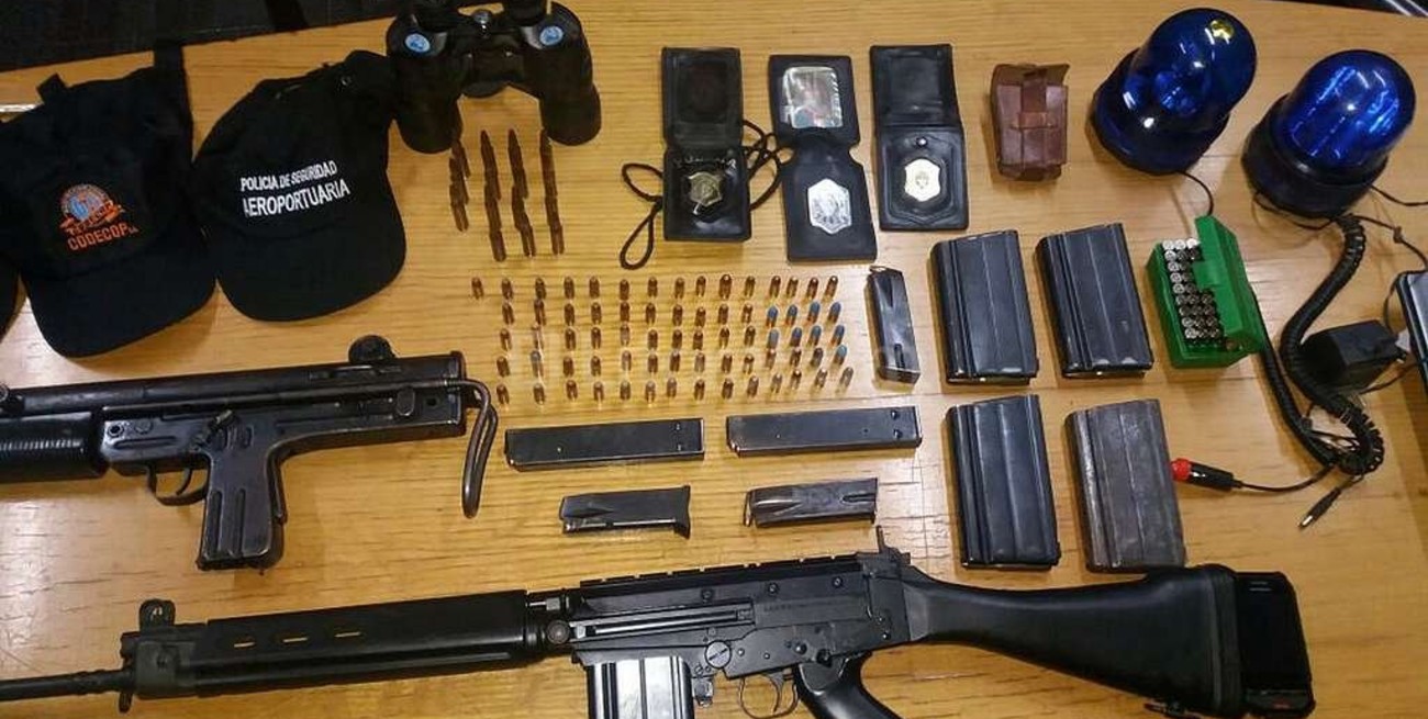 En tanto, los pesquisas que inspeccionaron la vivienda del fallecido secuestraron la pistola 9 milímetros, el revólver 357 Magnun, un fusil FAL, una ametralladora, decenas de municiones de distintos calibres, una mochila en la que había un uniforme similar a los de las fuerzas de seguridad, una campera con la inscripción "Policía Bonaerense" y hasta una chapa policial robada. Además, se hallaron dos pantalones y tres gorras de color oscuro, una de las cuales tenía la inscripción de la "Policía de Seguridad Aeroportuaria", y un handy con frecuencia policial, cinco cargadores y dos balizas similares a las que utilizan los móviles policiales.