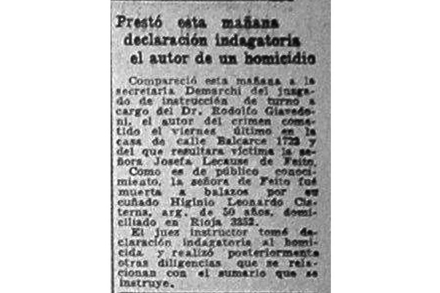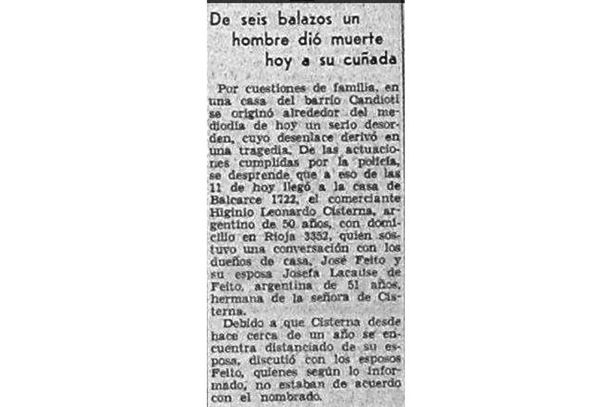 También informó el vespertino santafesino que el asesino se entregó. “El homicida salió a la calle y se trasladó a la seccional donde contó lo sucedido e hizo entrega de un revólver 44 con una cápsula vacía que dijo había utilizado para dar muerte a su cuñada”.