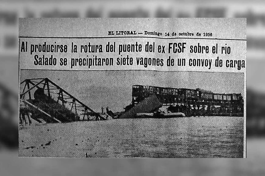 Puntualmente, el hecho ocurrió el sábado 13 de octubre de 1956 y tuvo sus lugar en las páginas de El Litoral al día siguiente. “Al producirse la rotura del puente del ex FCSF sobre el río Salado se precipitaron siete vagones de un convoy de carga”, tituló el vespertino.
