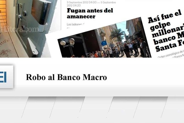 Entre la noche del 8 y la madrugada del 9 de septiembre de 2012, varios delincuentes dieron un certero golpe en las instalaciones de la sucursal del Banco Macro ubicada en la peatonal de la ciudad de Santa Fe.