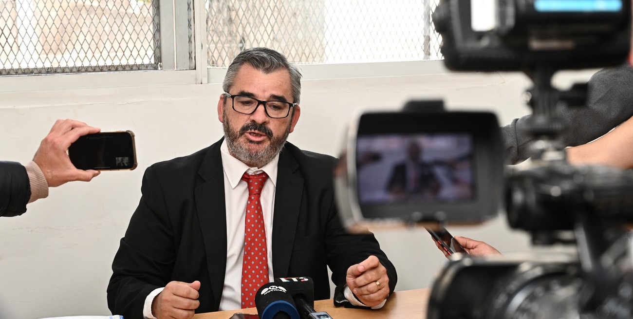 Andrés Marchi brindó una conferencia de prensa luego de que el MPA divulgara videos de las cámaras de seguridad de la zona del crimen.