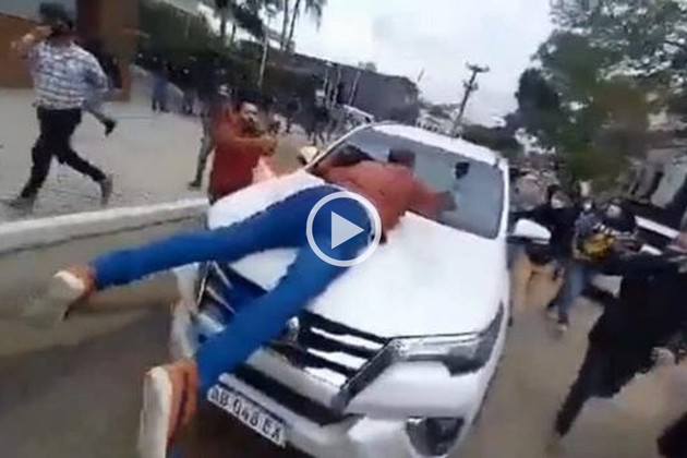 El ministro de Desarrollo Humano de Formosa, Aníbal Gómez, llevó por varios metros en el capó de su camioneta a un manifestante durante una protesta de comerciantes frente a la Casa de Gobierno provincial.