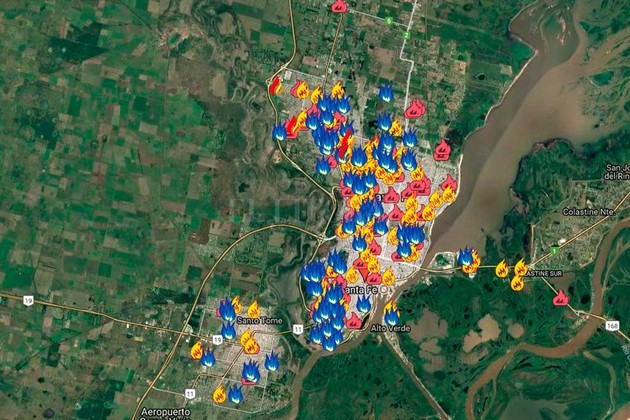A casi tres años de los primeros casos, los siniestros se siguen sucediendo. El mapa de la capital provincial aparece con cientos de “llamitas” (la referencia que se uso para georeferenciar cada hecho).