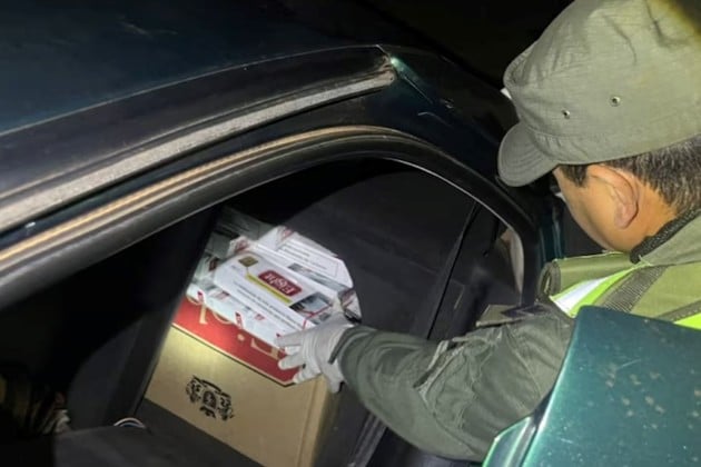 Durante la inspección del vehículo interceptado, los efectivos encontraron 5.000 paquetes de cigarrillos de procedencia extranjera, distribuidos tanto en el habitáculo como en el baúl. Además, hallaron un arma de fuego cuya tenencia no pudo ser justificada por los ocupantes.