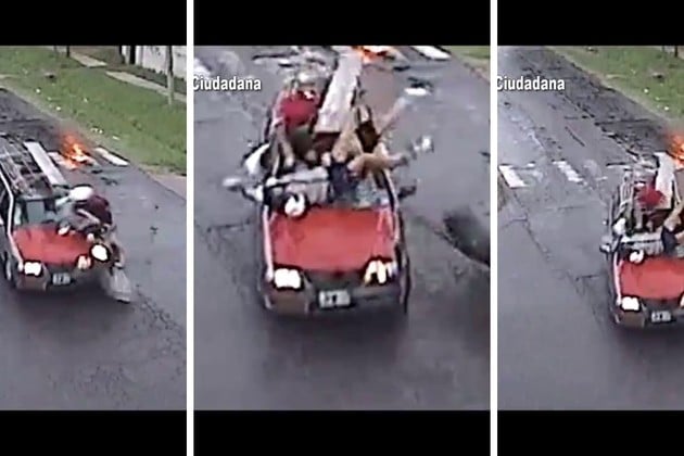 En la localidad de Benavídez, partido de Tigre, un impactante accidente de tránsito quedó registrado por las cámaras de seguridad. Una motocicleta chocó violentamente contra una camioneta en una intersección sin semáforos, provocando que sus ocupantes salieran despedidos y terminaran heridos.