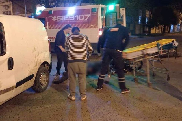 Minutos después arribó al lugar del accidente una unidad del Sies 107 cuyo personal cargó al motociclista y lo trasladó con urgencia hasta el hospital José M. Cullen.