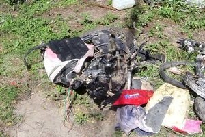 A raíz del fuerte impacto, el joven motociclista sufrió heridas graves y falleció en el acto, y el pequeño rodado quedo reducido a una masa de hierros retorcidos como lo muestra la imagen.