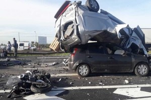 Un carril de la autopista Buenos Aires - Rosario -en sentido a Santa Fe- permanecía obstruido pasadas las 17. En el choque quedaron involucrados varios vehículos, entre ellos Ford Fiesta, una camioneta Mercedes Benz Sprinter, un Renault Duster y una moto Kawasaki Ninja.