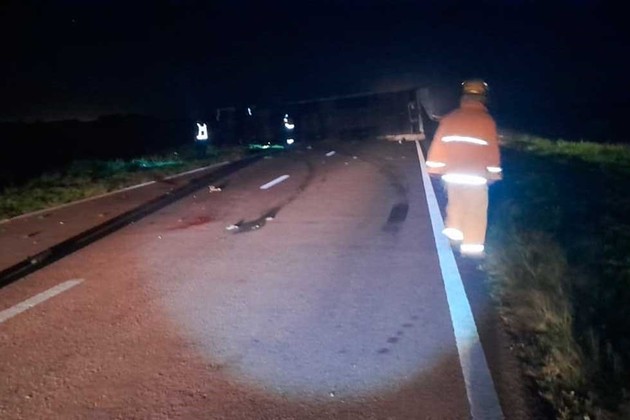 Se supo que la policía recibió un aviso y al llegar al lugar encontró el camión volcado y una persona sin vida al costado del camino.