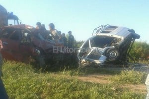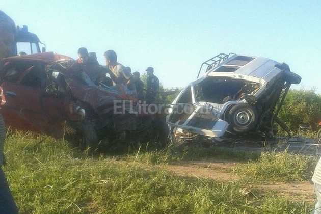 En el lugar del accidente, efectivos policiales y bomberos voluntarios de Colonia Dora trabajan para retirar los cuerpos de las víctimas y los vehículos que interrumpen la normal circulación del transporte en la ruta nacional 34.