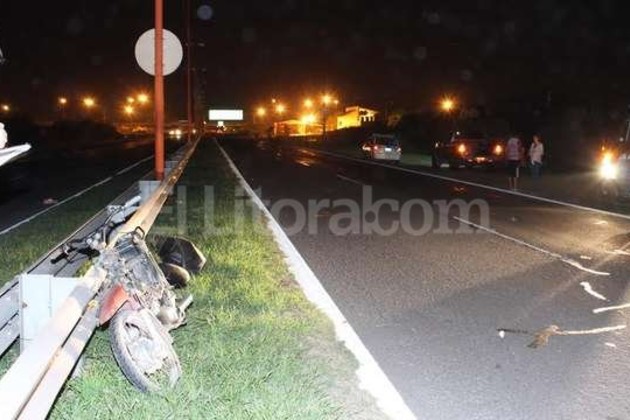 Voceros policiales detallaron que a las 23 de este lunes Lucas Gómez iba caminando a la vera de la autovía e impulsaba con sus brazos una motocicleta. Una camioneta Toyota Hilux lo embistió.