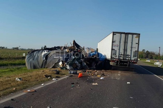 Dpto. Relaciones Policiales Santa Fe Tras el encontronazo los camioneros quedaron atrapados en sus cabinas de mando.Dpto. Relaciones Policiales Santa Fe Tras el encontronazo los camioneros quedaron atrapados en sus cabinas de mando.