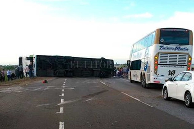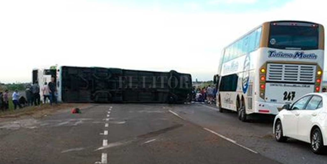 El accidente ocurrió en el kilómetro 141 y, tras volcar, el colectivo quedó cruzado sobre la calzada.