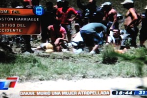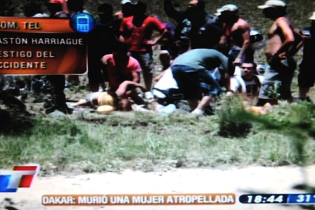 Una mujer de 28 años resultó muerta y otras siete personas heridas, entre ellos dos menores, tras haber sido atropelladas esta tarde por la camioneta Desert Warrior nro 418 que conducía el alemán Mirco Schultis, cuando tomaba parte del inicio de la primera del Dakar Argentina - Chile 2010.
