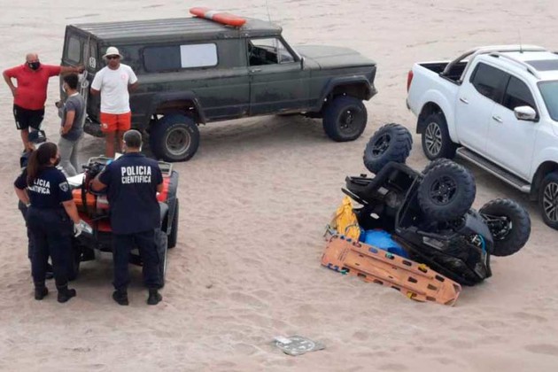 Una chica de 33 años murió este miércoles en la playa de Pinamar al ser aplastada por el cuatriciclo que conducía, luego de que el rodado volcara ante una mala maniobra al intentar subir un médano.