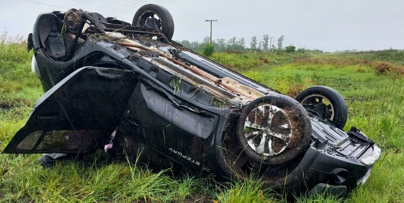 Por causas que aún se investigan, el automóvil despistó y volcó, quedando sobre la banquina hacia el este de la ruta.