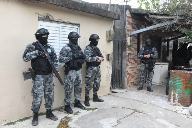 El momento en que los agentes allanan uno de los domicilios. Crédito: Guillermo Di Salvatore