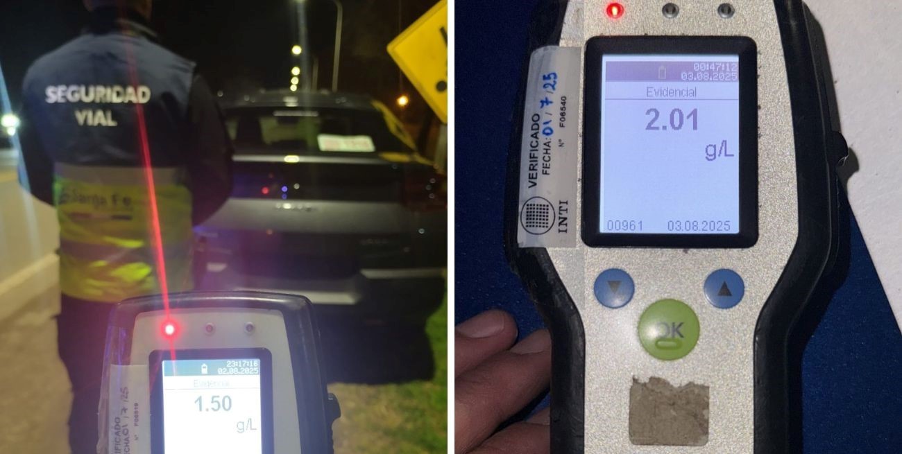 Los resultados fueron tan preocupantes como elocuentes. En Rafaela, un conductor fue sorprendido al mando de un automóvil con 2,01 gramos por litro de alcohol en sangre, más de cuatro veces el límite permitido. A este le siguieron otros casos de alto riesgo: en Wheelwright, otro individuo conducía una camioneta con 1,73 g/l; en Roldán, un automovilista registró 1,50 g/l, y en Funes, otro dio 1,18 g/l.
