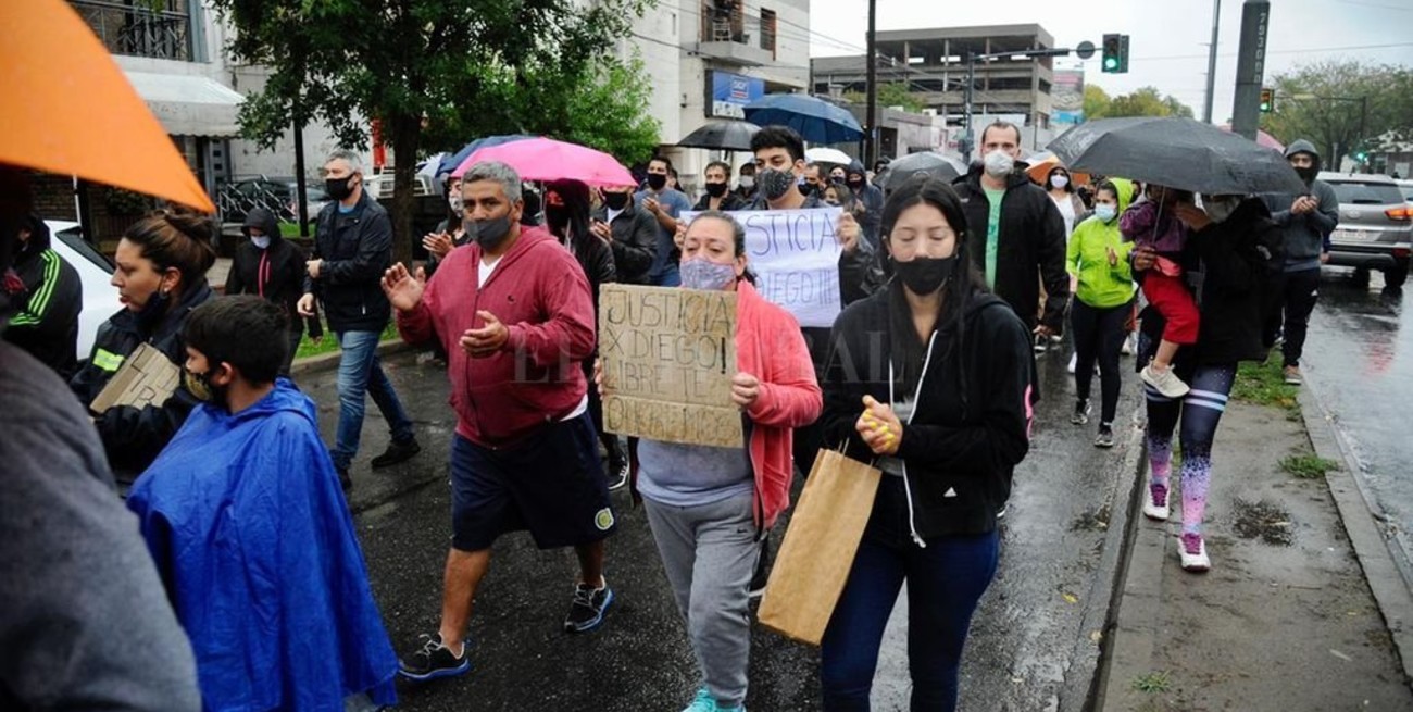 «Justicia por Diego»; «Libertad Ya»; «Liberen a Diego»; «¡Justicia! ¡Seguridad!»; «Basta de inseguridad», eran algunas de las decenas de pancartas que la gente llevaba, escritas en papel afiche y hasta cartones, que a medida que iba avanzando la larga columna, sus letras iban perdiendo forma por las gotas de lluvia.