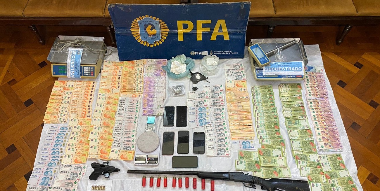 Además, se secuestraron dos escopetas, una de ellas semiautomática con pedido de secuestro por robo, municiones de guerra, una pistola calibre .380, ocho teléfonos celulares, un vehículo con pedido de secuestro y más de medio millón de pesos en efectivo.