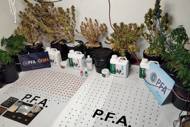 En Italia al 1200, la irrupción terminó con dos jóvenes esposados: C. P. L. (21) y M.G. (23). Allí se hallaron 194 pastillas de éxtasis, marihuana tipo cogollo, hongos alucinógenos, ansiolíticos, balanzas, tres celulares y 64 mil pesos en efectivo.