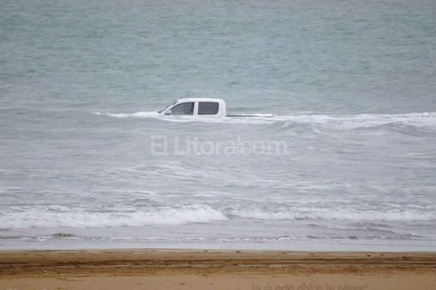 El extraño episodio ocurrió el jueves pasado, alrededor de las 17, en la Playa de los Patos, al lado de la escollera sur, donde el conductor de la pick-up irrumpió contra las olas, ante la atónita mirada de quienes estaban en el lugar.